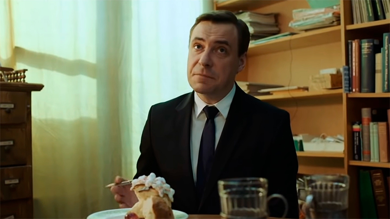 © Кинокомпания LookFilm Сам Чичиков торгуется из чистого азарта — так же и в подставах силовиков нет никакого практического смысла. Все суета. Идейные векторы у Гоголя и Константинопольского совсем разные. Гоголь страдал о России. Ему было нужно любыми способами вывести страну из ада в земной рай, он для этого и задумал свой роман как ответ Данте. Константинопольский ставит на ней крест. Тут все глупо и мертво душевно, каждый персонаж и сам поскорее мечтает отправиться на кладбище, он мысленно уже там. И остальных уже похоронил — и Максима Галкина, и Захара Прилепина, и Федора Бондарчука, и Алексея Навального, превратившихся в сериале в виртуальные фотографии на гранитных памятниках. Все уравнены скупой географией престижных некрополисов.