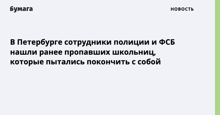 В Петербурге сотрудники полиции и ФСБ нашли ранее пропавших школьниц, которые пытались покончить с собой