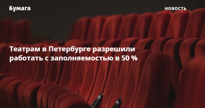 Театрам в Петербурге разрешили работать с заполняемостью в 50 %