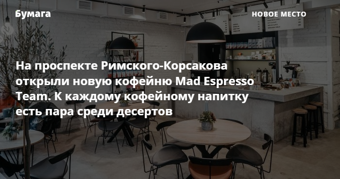 На проспекте Римского-Корсакова открыли новую кофейню Mad Espresso Team