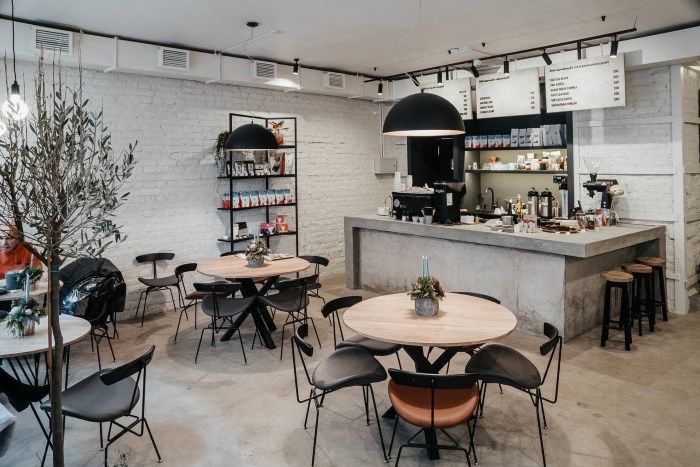 Новая кофейня больше точки на 2-й Советской: помещение рассчитано на 38 посадочных мест, его отличают большие панорамные окна. Интерьер построили на сочетании серого цвета и натурального дерева, в зале выставили зеленые растения. Главным акцентом стала монолитная бетонная барная стойка.