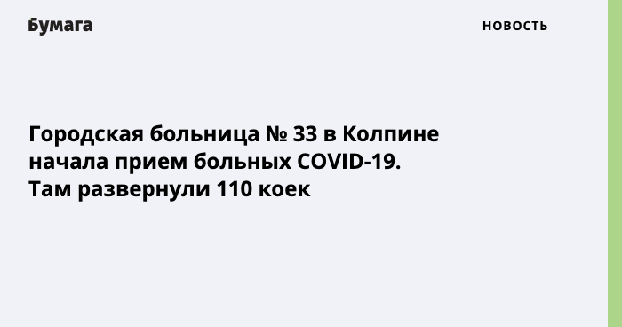 Городская больница № 33 в Колпине начала прием больных COVID-19