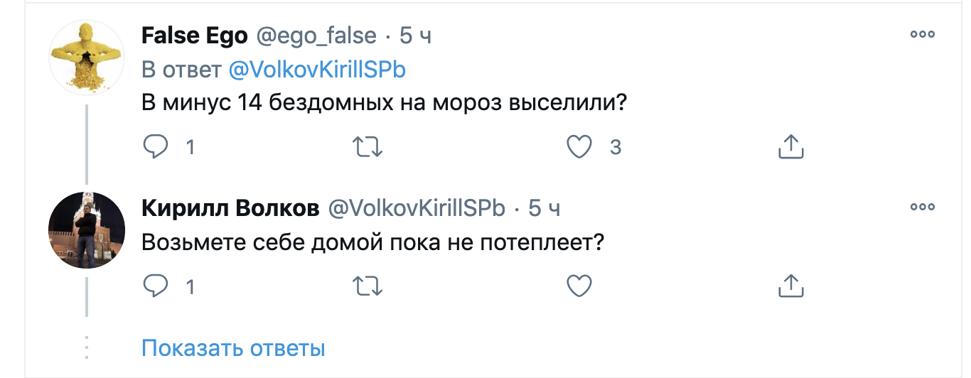 В ответ на комментарий о морозах в Петербурге депутат написал: «Возьмете себе домой пока не потеплеет?»
