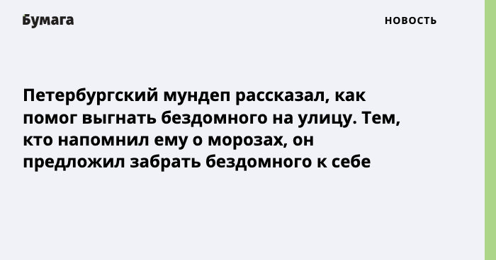 Петербургский мундеп рассказал, как помог выгнать бездомного на улицу