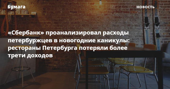 Ресторанный бизнес Петербурга недополучил более трети дохода в новогодние каникулы, по сравнению с аналогичным периодом 2020 года. Это следует из анализа, проведенного «Сбербанком», пишет ТАСС.