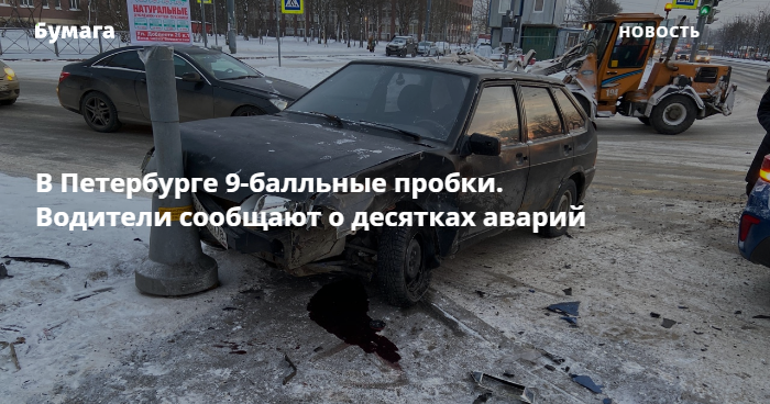Пробки на петербургских дорогах достигли 9 баллов, следует из данных «Яндекса». Водители массово сообщают об авариях.