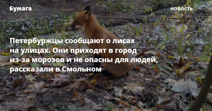 При этом животные не опасны для людей, отмечают в комитете. В жилую зону они приходят из-за голода, а это признак здоровой лисы. Лисы с бешенством не едят и не пьют, ведут себя агрессивно. Здоровые лисы избегают контактов с людьми. Кроме того, специалисты Петербурга и Ленобласти оставляют в местах обитания лис подкормку с вакциной для предотвращения случаев заболевания бешенством.
