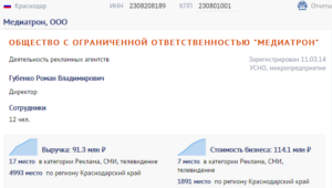 В комментариях Наталья Машталир говорила, что обратился в администрацию предприниматель, тогда как выдано разрешение было физическому лицу Роману Губенко. Он же является директором и соучредителем крупного оператора наружной рекламы в Краснодаре – ООО «Медиатрон».