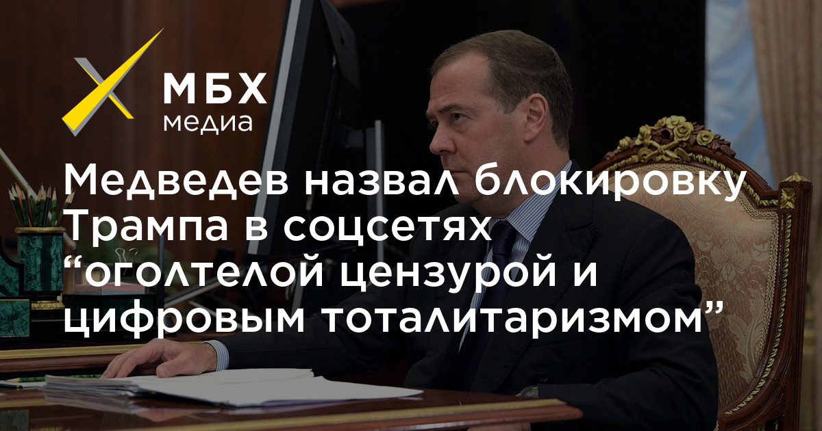 Медведев назвал блокировку Трампа в соцсетях «оголтелой цензурой и цифровым тоталитаризмом»