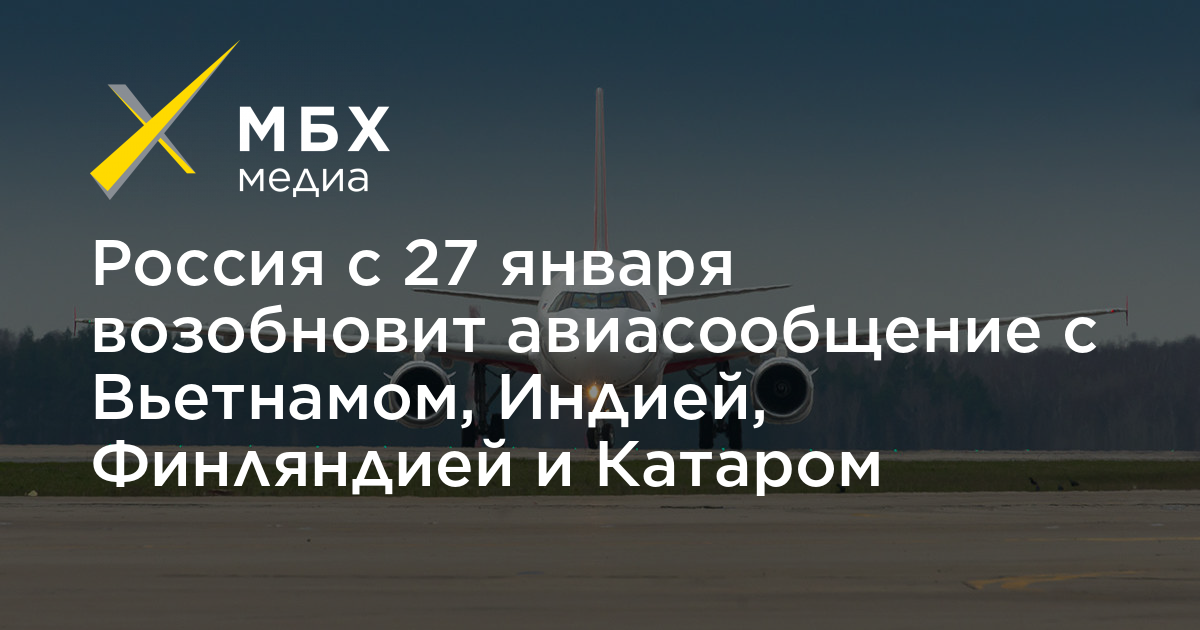 «По итогам состоявшегося обсуждения и с учетом эпидобстановки в отдельных странах штабом принято решение о возобновлении на взаимной основе международного авиасообщения с 27 января 2021 г. со следующими государствами: Вьетнам (Москва — Ханой, два раза в неделю), Индия (Москва — Дели, два раза в неделю), Финляндия (Москва — Хельсинки, два раза в неделю, и Санкт-Петербург — Хельсинки, два раза в неделю), Катар (Москва — Доха, три раза в неделю)», — сказано в сообщении оперштаба.