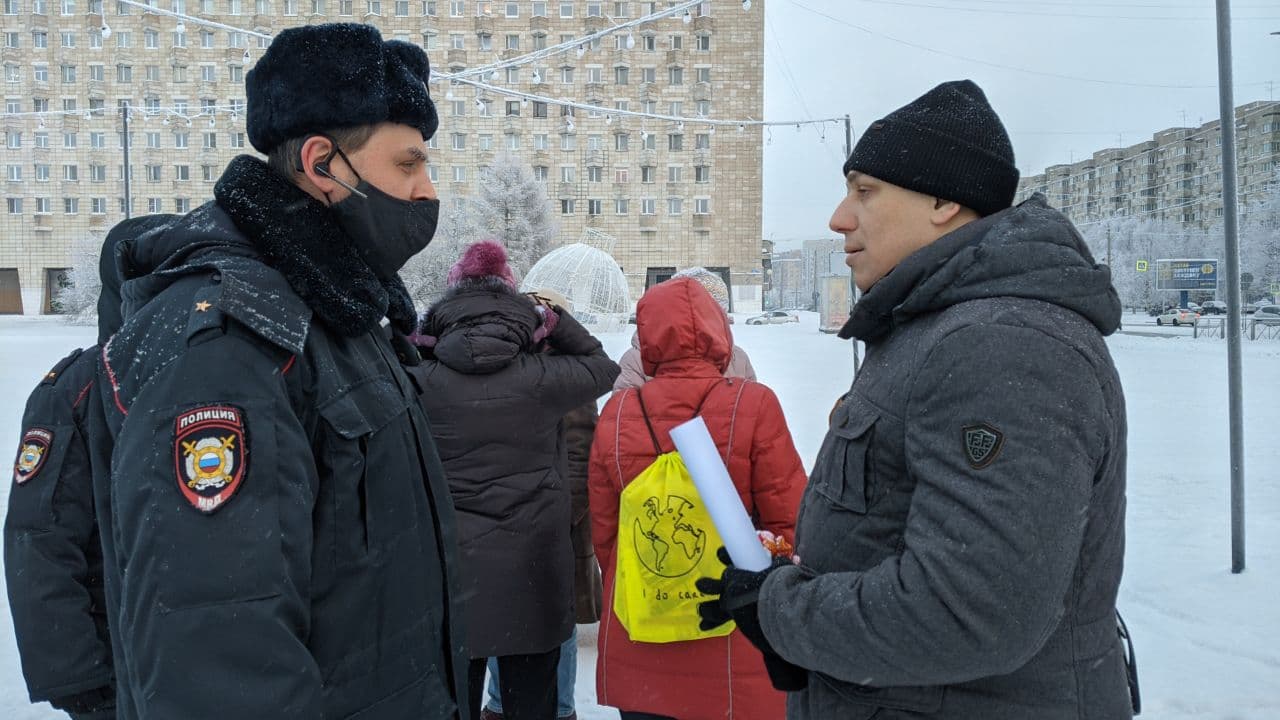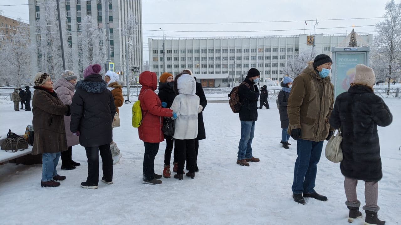 В Архангельске 16 января на акцию в поддержку политика Алексея Навального, который возвращается из Германии в Россию, вышли 15 человек, сообщает корреспондент сайта Север Реалии.