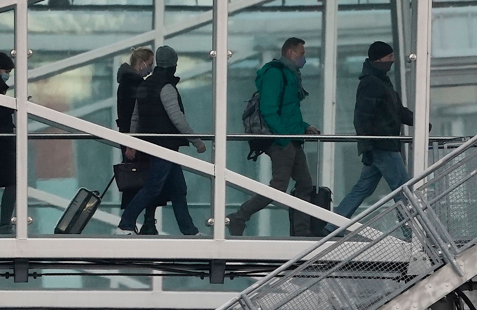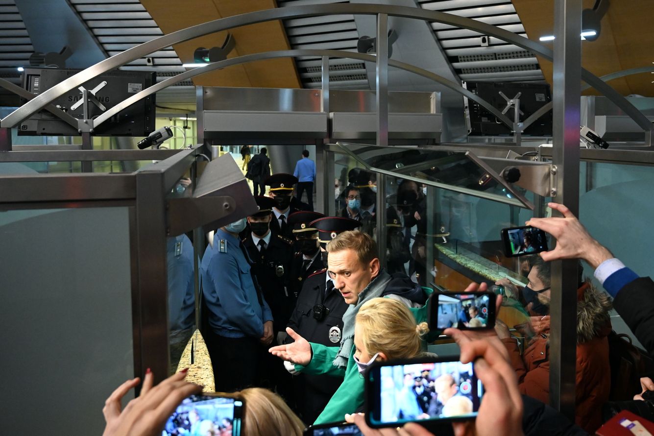 На паспортном контроле к Навальному подошли пограничники и сотрудники полиции — и потребовали пройти с ними. Несмотря на возражения адвоката Ольги Михайловой, после недолгих препирательств Навального задержали; на прощание он поцеловал жену и пошел вместе с полицейскими.