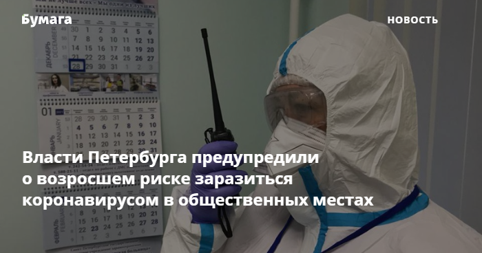 Вероятность заразиться коронавирусом в общественном месте в Петербурге выросла по сравнению с предыдущими днями. Об этом 17 января сообщил городской координационный совет по противодействию COVID-19.