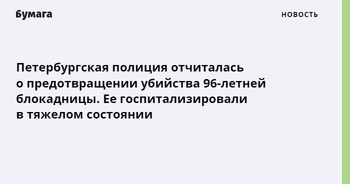 В Петербурге предотвратили убийство блокадницы