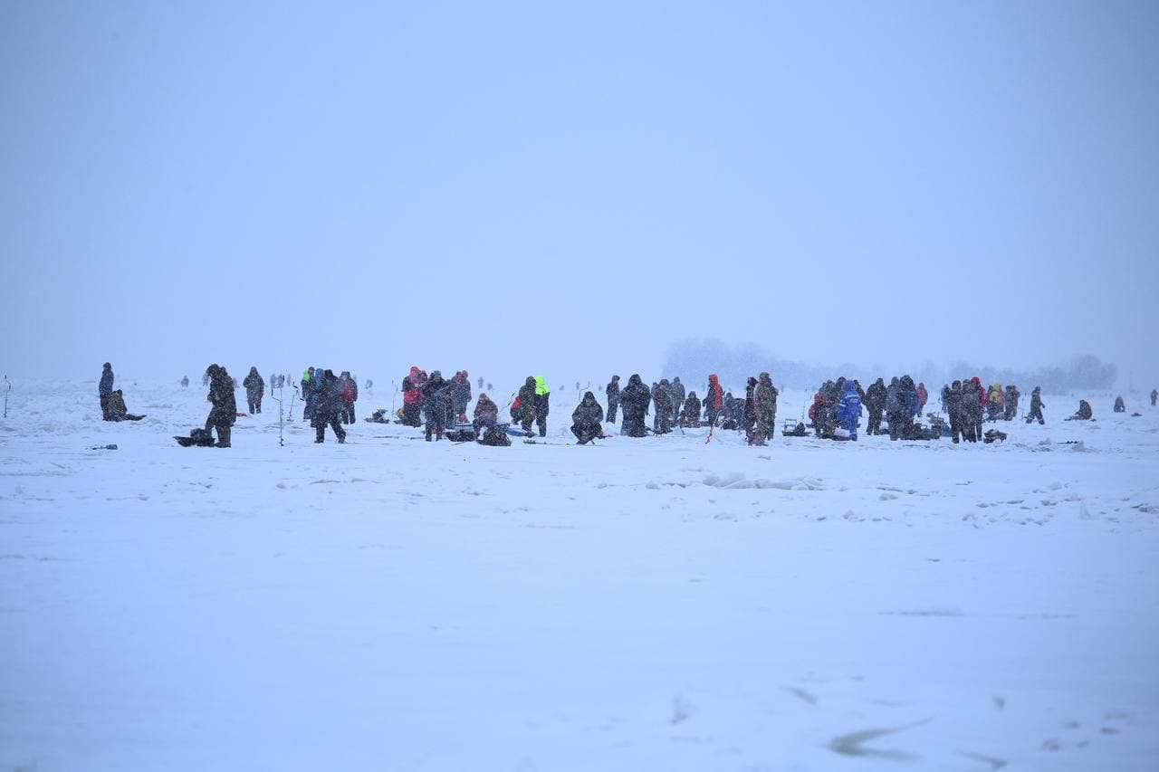 На Канонерском острове петербуржцы вышли на лед Финского залива, чтобы порыбачить.