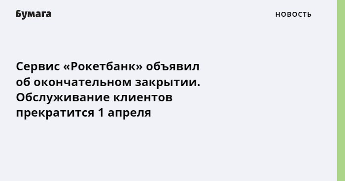 Сервис «Рокетбанк» объявил об окончательном закрытии
