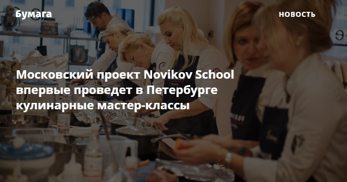 Крупнейшая в России кулинарная школа — московская Novikov School — впервые проведет в Петербурге серию мастер-классов, сообщили «Бумаге» представители проекта. Занятия состоятся в начале февраля в кулинарном салоне Вероники Ермаковой на улице Ильюшина, 14-1.