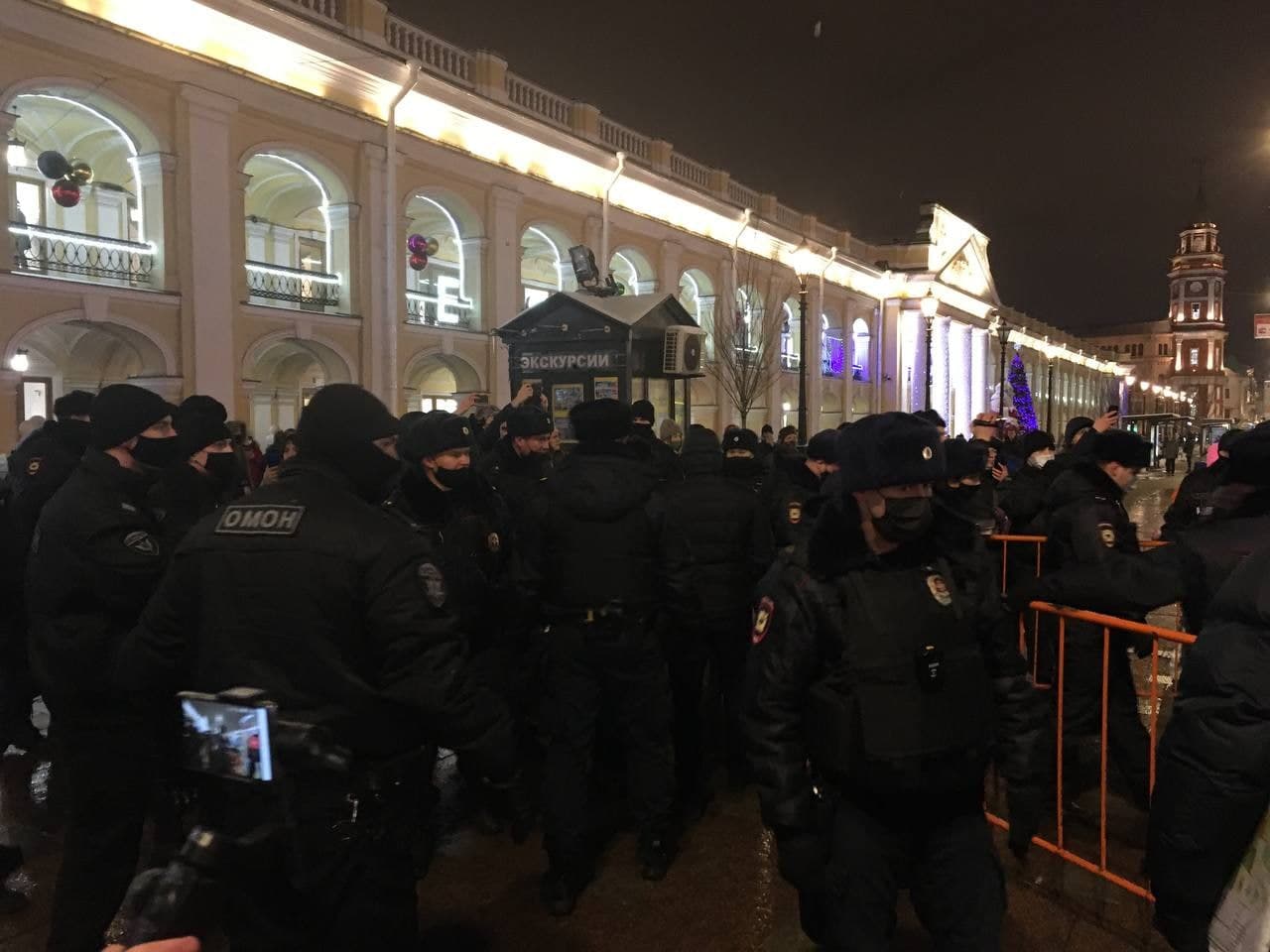 В центре Петербурга 18 января задержали более 40 человек, вышедших на акцию в поддержку Навального. Им выдали протоколы о нарушении режима повышенной готовности.