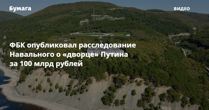 Фонд борьбы с коррупцией опубликовал расследование Алексея Навального о дворце рядом с Геленджиком, который якобы принадлежит президенту России Владимиру Путину и стоит 100 млрд рублей. Видео доступно на ютьюбе, текстовая версия — на сайте.