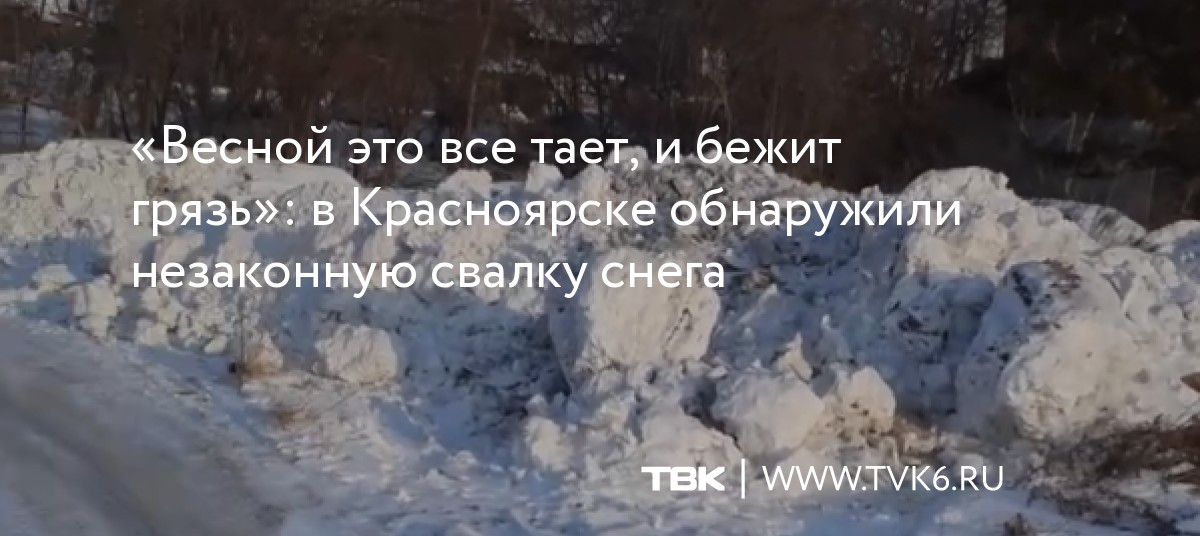 Как «ТВК Красноярск» пояснили в департаменте городского хозяйства, в черте города действительно есть 11 официальных мест, куда свозят снег с улиц, однако свалка, которая попала на видео, незаконная. Информацию о ней уже передали в администрацию Центрального района, там пообещали провести проверку и привлечь предпринимателя к ответственности.