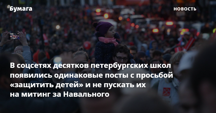 В группах десятков петербургских школ во «ВКонтакте» появились одинаковые посты с просьбой не пускать детей 23 января на митинг за освобождение Алексея Навального.