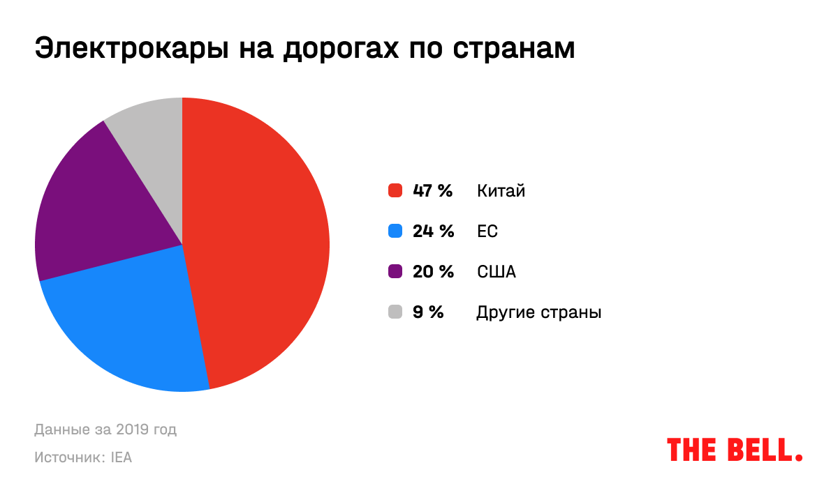 Это Китай. На него приходится практически половина мирового электропарка. Следом идут ЕС и США.