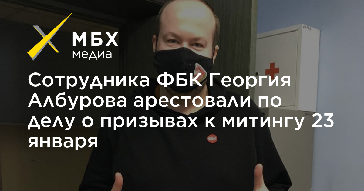 Мещанский суд Москвы арестовал сотрудника ФБК Георгия Албурова на 10 суток по делу о призывах к митингу 23 января. Об этом «МБХ медиа» сообщили в пресс-службе суда.
