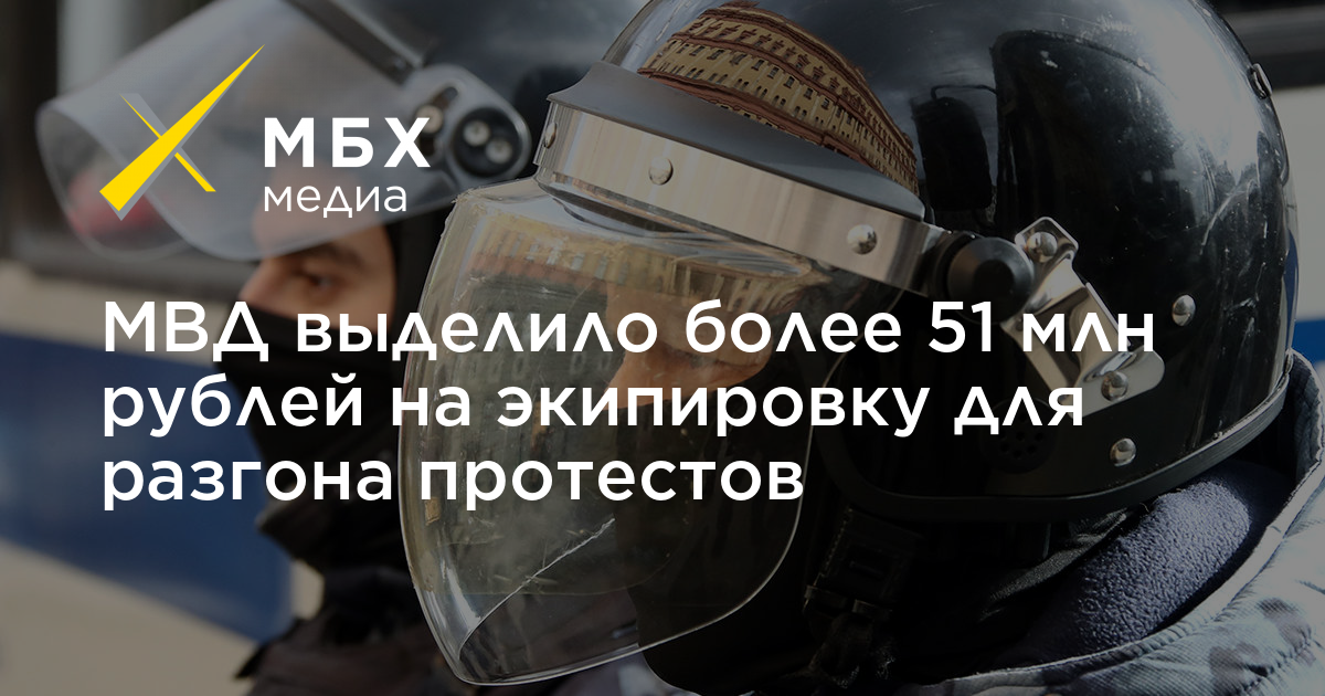 Центральное окружное управление материально-технического снабжения (ЦОУМТС) МВД выделило 51,6 млн рублей на экипировку для сотрудников, которая используется при разгоне протестных акций, подсчитало «МБХ медиа».