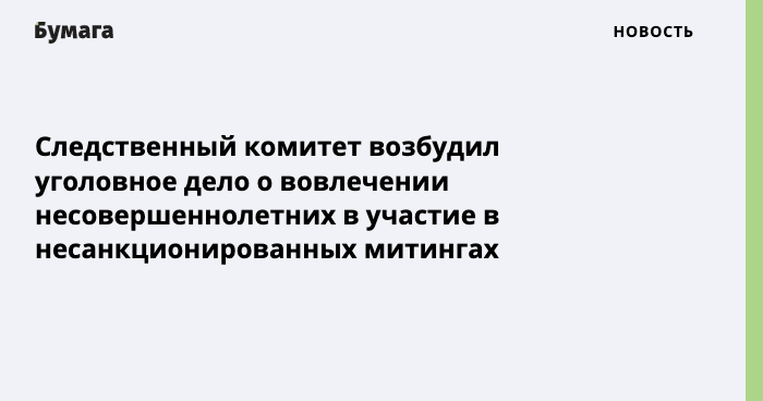 Следственный комитет России возбудил уголовное дело по фактам призывов к несовершеннолетним выйти на несогласованный митинг 23 января. Об этом сообщает пресс-служба ведомства.