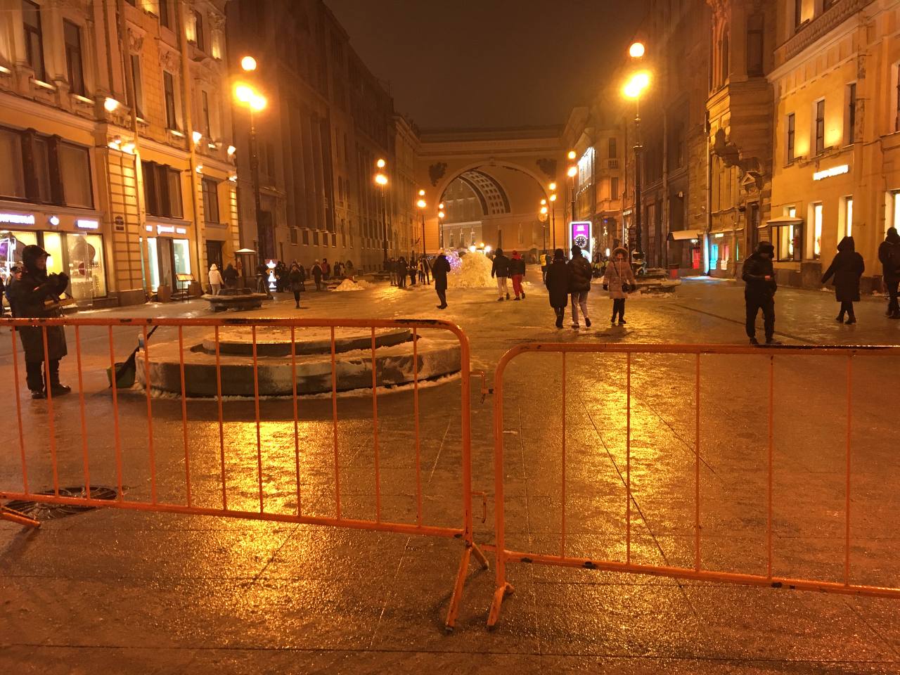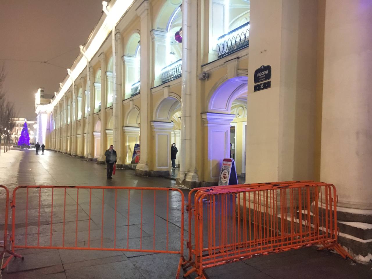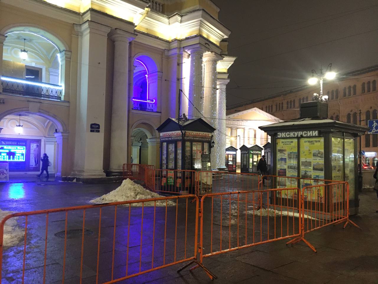 Ограждения установили у Гостиного двора по периметру от Думской до Садовой улицы. Кроме того, заборами оградили Большую Морскую улицу от Невского к Дворцовой площади, вход на саму площадь со стороны Дворцового проезда, а также Малую Садовую со стороны Невского проспекта. Ограждения появились и у Петропавловской крепости рядом с Кронверкским мостом.