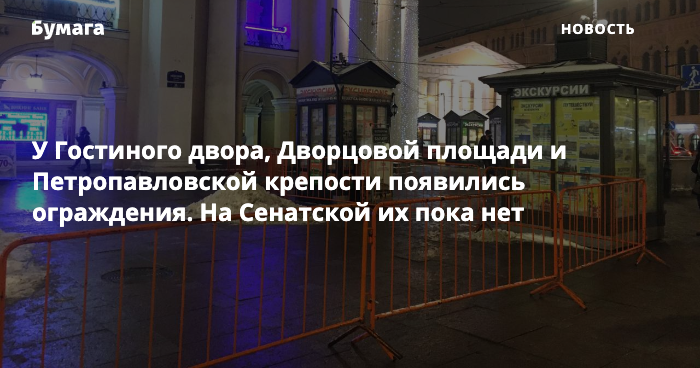 У Гостиного двора, Дворцовой площади и Петропавловской крепости появились ограждения