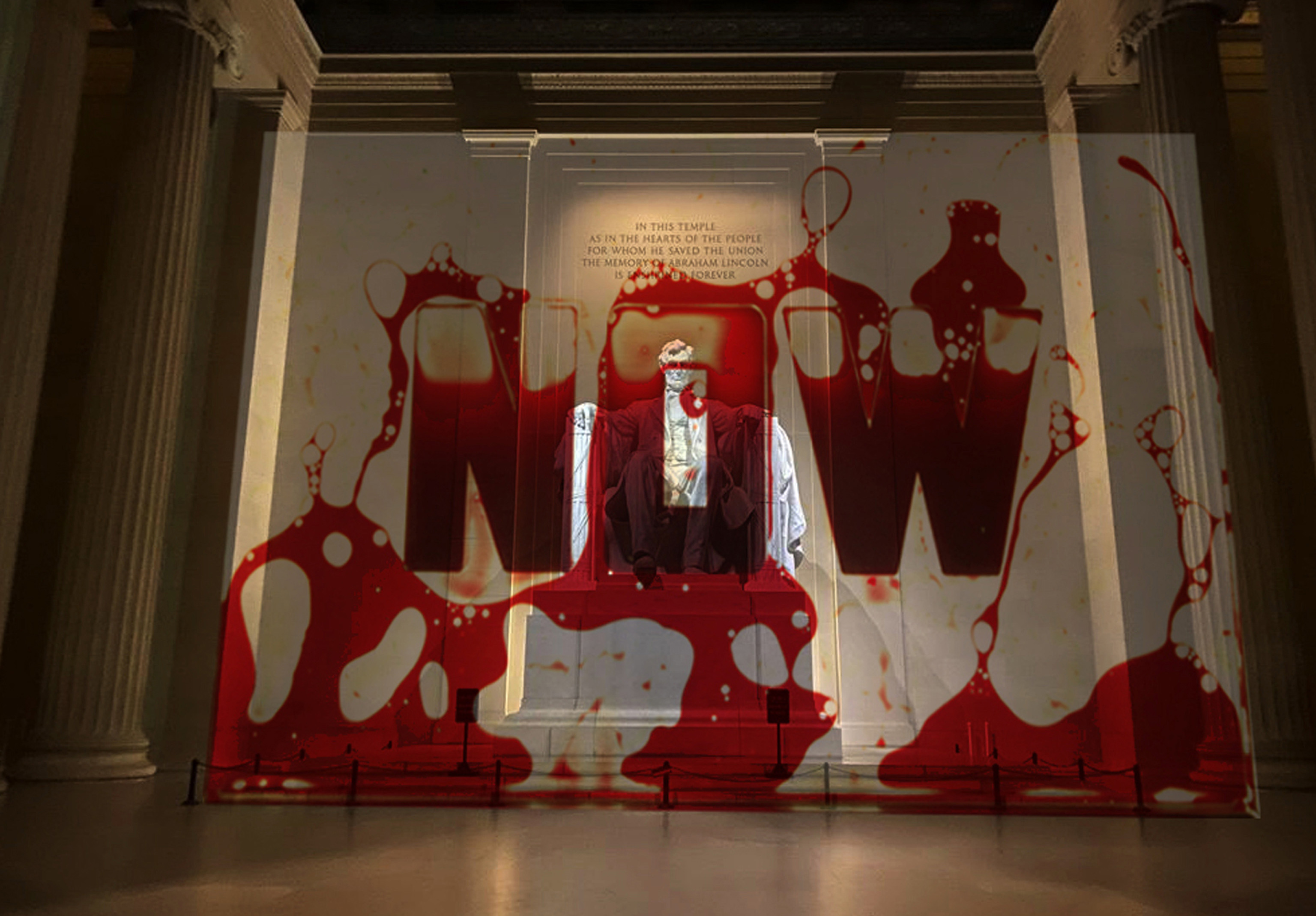– Да, это было нормальным явлением, я был готов к этой ситуации. В последний год, особенно из-за ограничений в передвижении, я осознал, что есть альтернативное искусство, есть реальный андеграунд, и тактика культурного терроризма или партизанского концептуализма сейчас самая актуальная. Когда они вообще отказались показывать эту работу, я попросил знакомого художника в Вашингтоне помочь организовать партизанские проекции. Два раза проецировали на Трамп-отель, потом на мемориал Линкольну – это было в пять утра. Просто человек приезжает с проектором и включает. Полиция подходит, и они разговаривают, а люди все это видят, фотографируют. Потом приходится все собирать и уезжать. Ты же не повреждаешь здание, а просто освещаешь его.