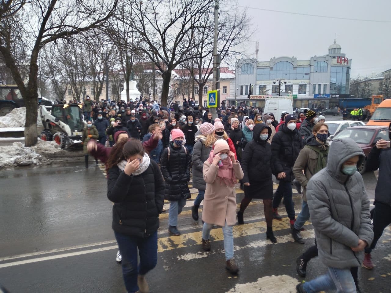Около 400 протестующих на акции в поддержку Навального в Пскове направились к Летнему саду