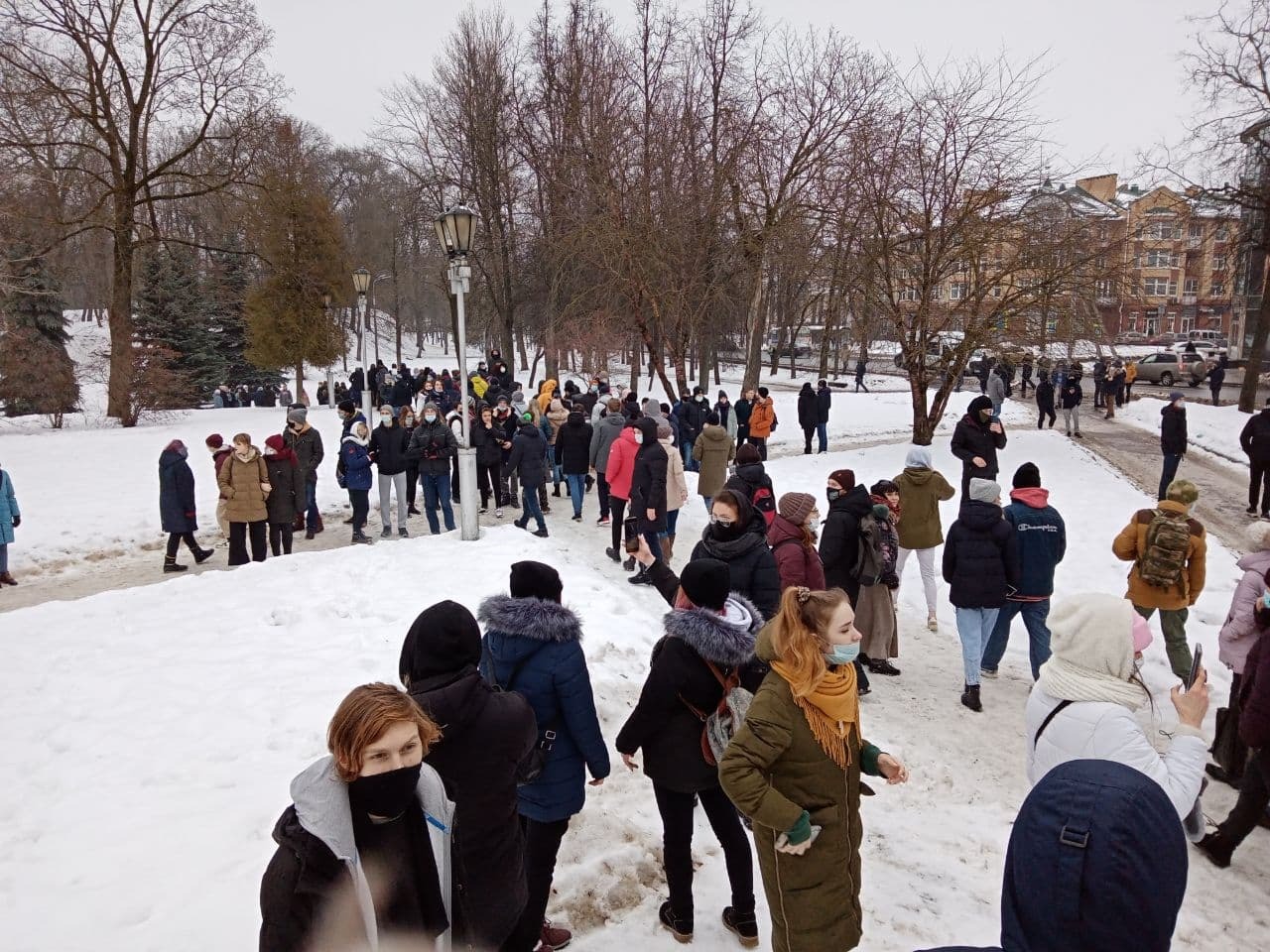 На акции в поддержку Алексея Навального в Пскове задержан корреспондент «Псковской губернии» Владимир Капустинский. Всего задержано больше 10 человек. Акция продолжается. Протестующие дошли до Летнего сада, обошли перекрытую техникой площадку у памятника «Пушкин и крестьянка» и ушли на площадку за памятником, сообщает корреспондент «ПГ».
