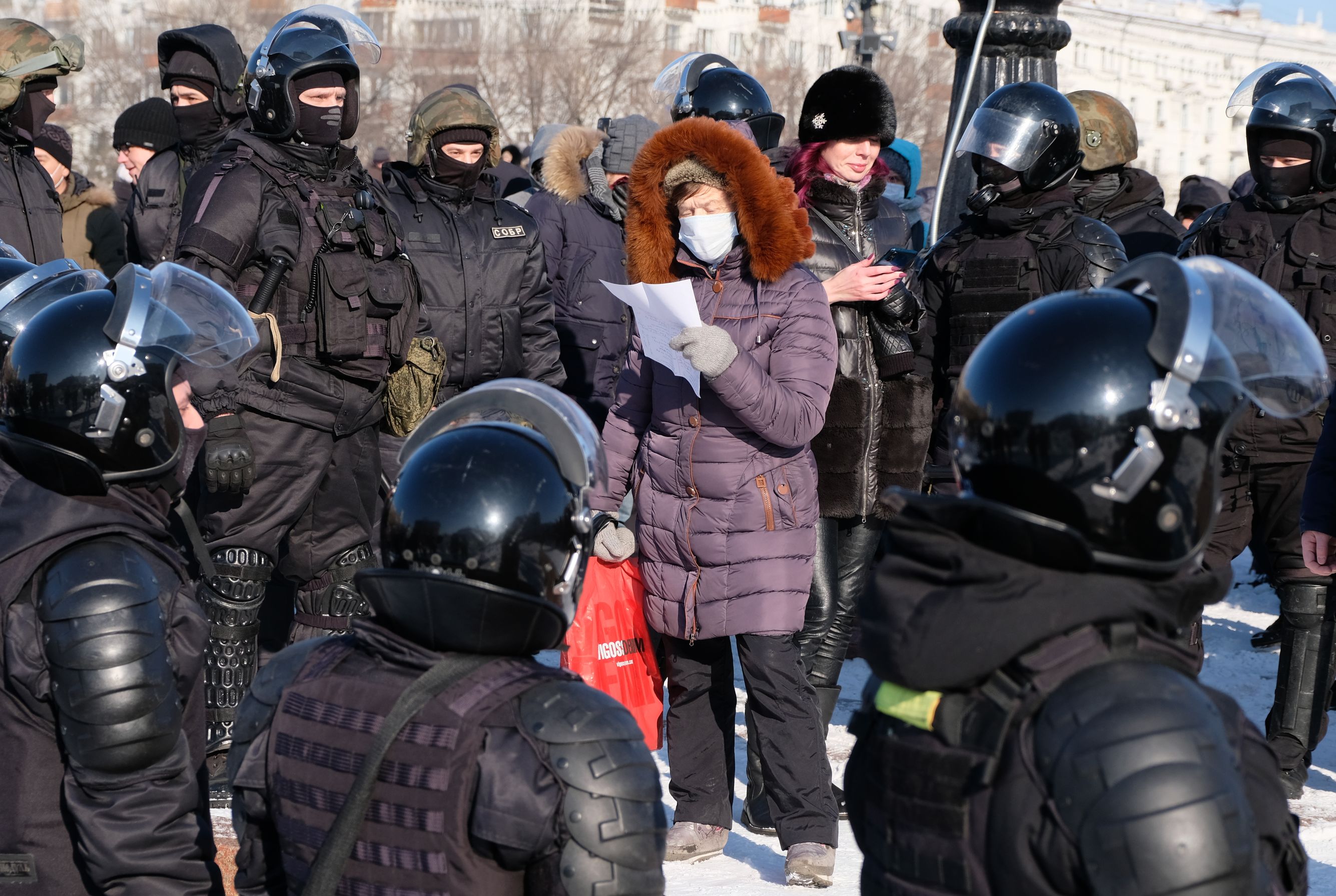 В Красноярске на митинг вышли примерно полторы тысячи человек. Там также происходят точечные задержания.