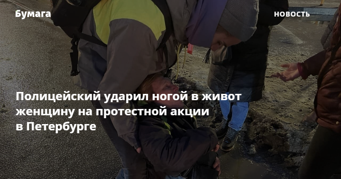 Полицейский ударил ногой в живот женщину на протестной акции за освобождение Алексея Навального в Петербурге. Инцидент произошел вечером 23 января около площади Восстания, пишет «Фонтанка».