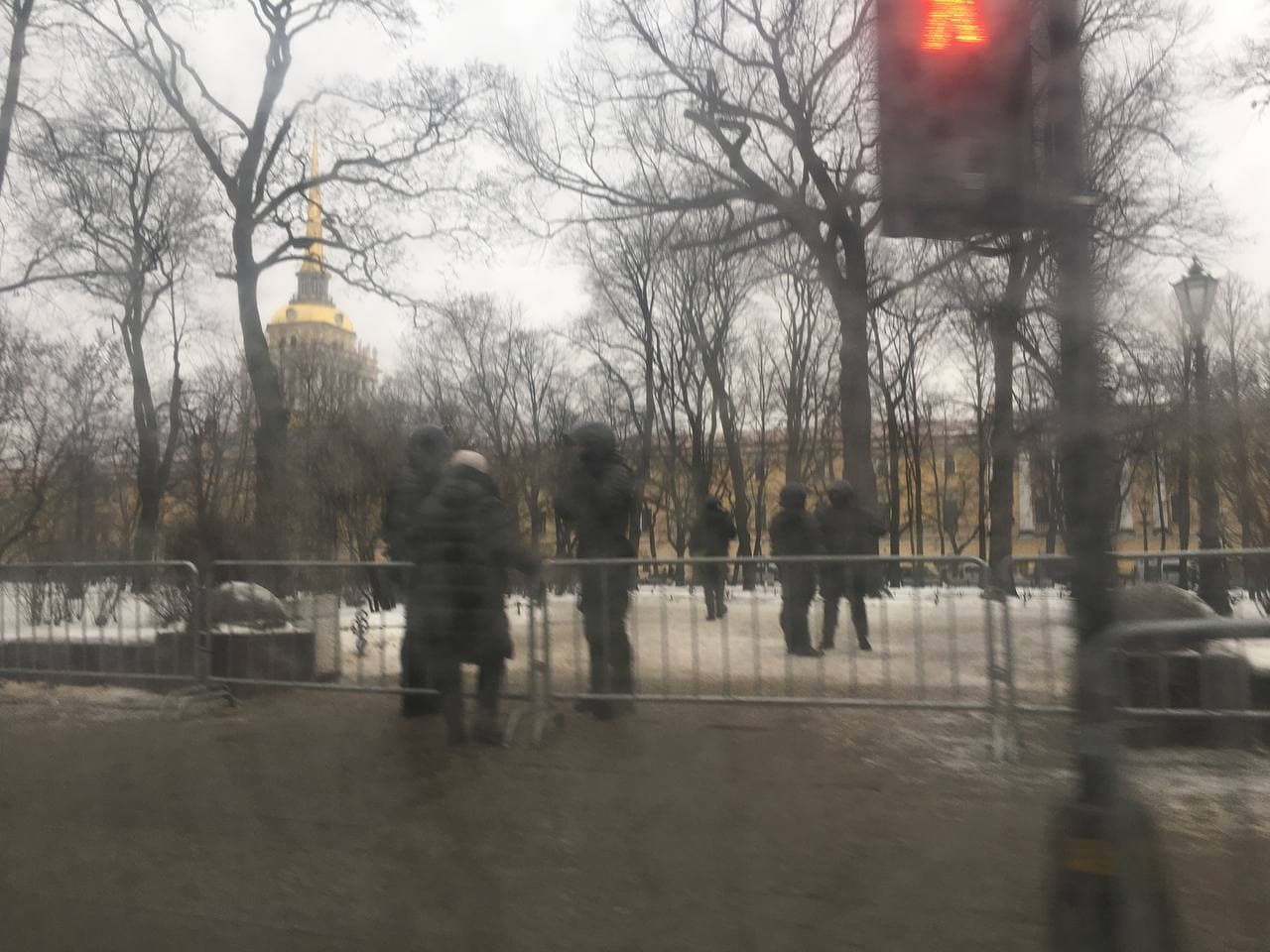В Александровский парк, который находится неподалеку от Сенатской площади, вход ограничен. По периметру выставлены ограждения и дежурит полиция.