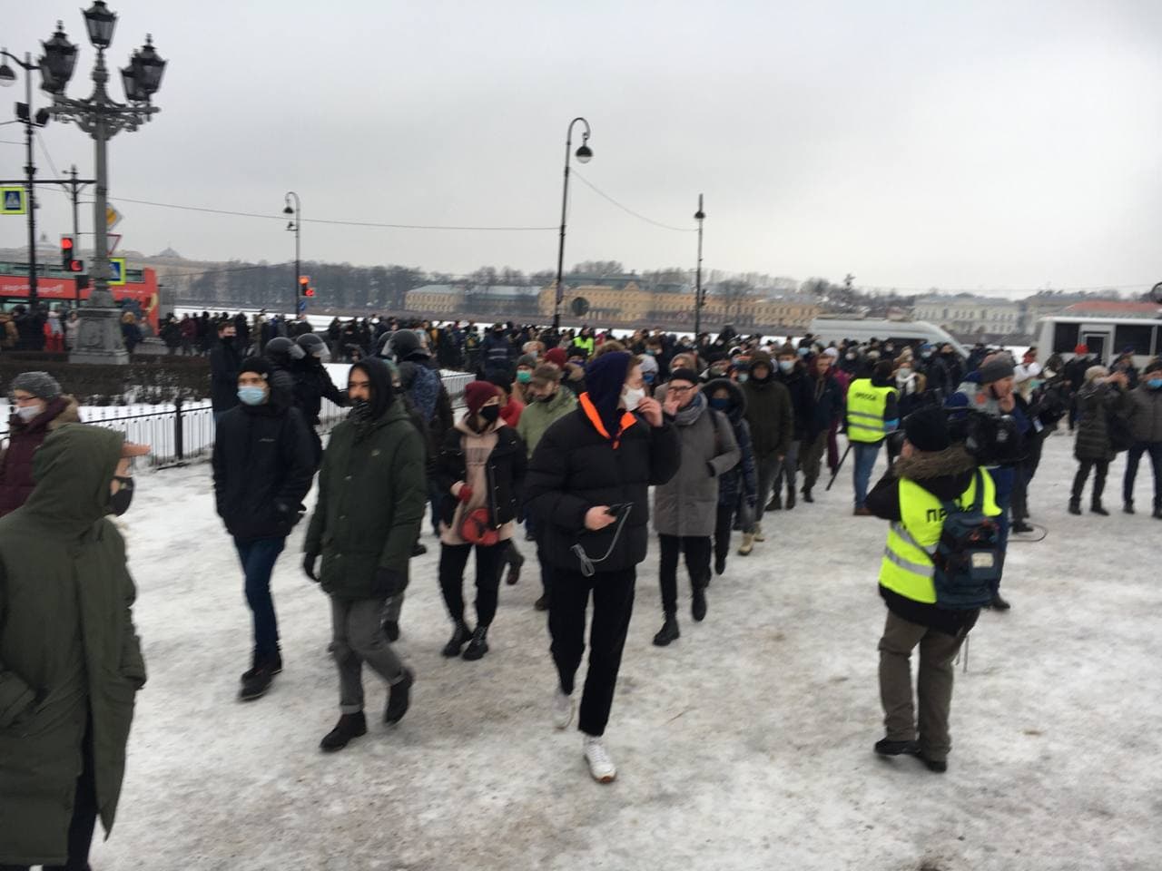 На Сенатскую площадь пройти можно. К 13:45, по оценке корреспондента «Бумаги», там собралось не менее 200 человек, не считая журналистов. Несогласованная акция в поддержку Навального запланирована на 14:00.