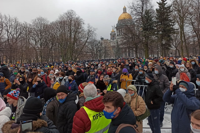 На акции в поддержку Навального в Петербурге собралось около 2 тысяч человек