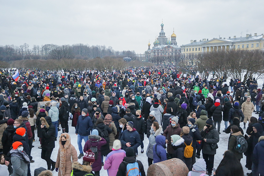 Сегодня в центре Петербурга прошла акция в поддержку арестованного Алексея Навального. В Петербурге, по разным подсчетам, на улицы вышли от 15 до 30 тысяч человек. Семичасовой протест сопровождался жесткими задержаниями, только по предварительным данным в городе задержали больше 250 горожан.