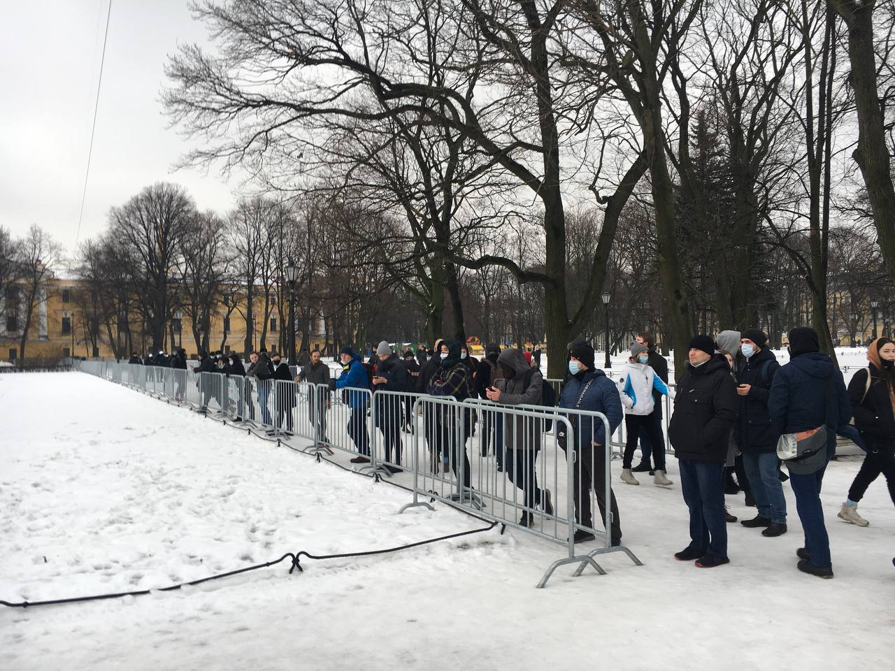 Также до митинга на выход закрыли две станции метро в центре Петербурга: «Адмиралтейскую» и «Невский проспект» (со стороны канала Грибоедова). У Дворцовой площади и Гостиного двора дежурят полицейские, там установили заграждения.