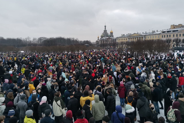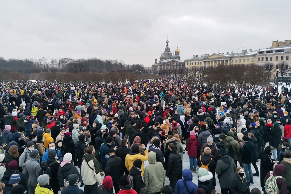 На акцию в поддержку Алексея Навального в Петербурге в общей сложности вышло около 10 тысяч человек. Митинг начался на Сенатской площади, затем колонна двинулась по Невскому проспекту. Большая часть людей дошла до Марсова поля.