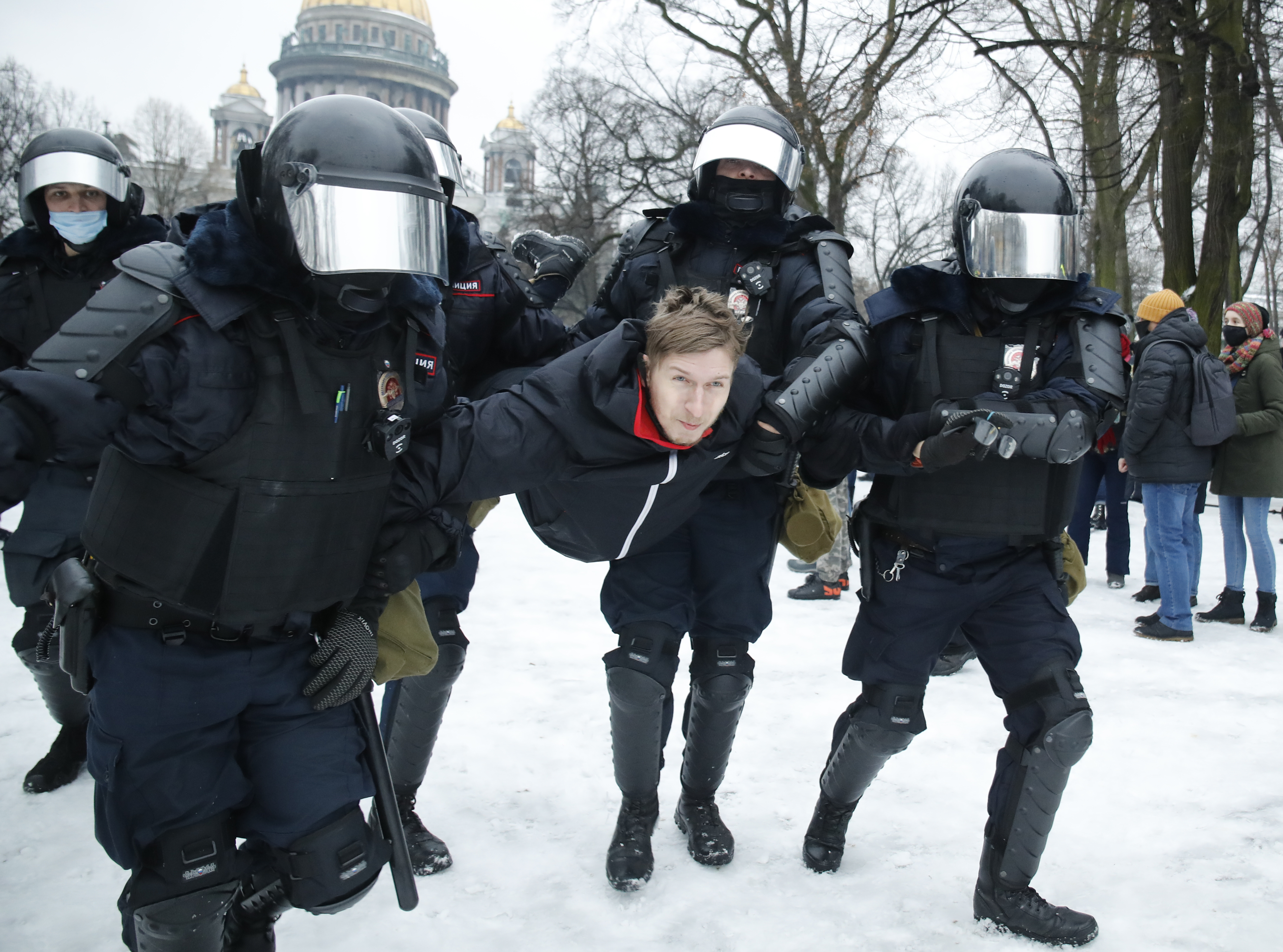 В субботу в десятках городов России были задержаны более 3,5 тысяч участников не согласованных с властями акций протеста в поддержку находящегося под стражей оппозиционера Алексея Навального.