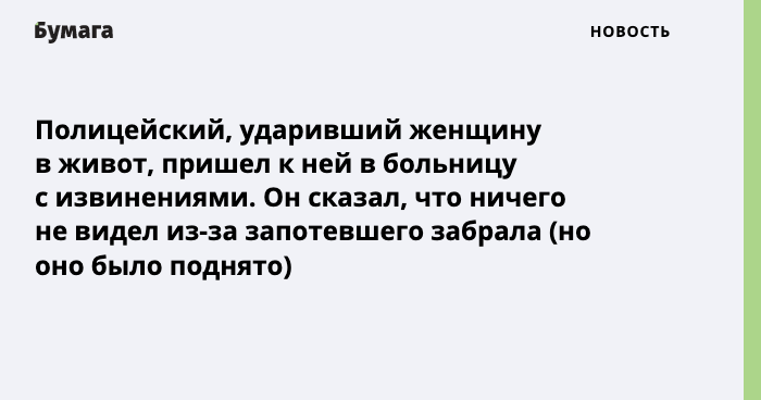Полицейский, ударивший женщину в живот, пришел к ней в больницу с извинениями