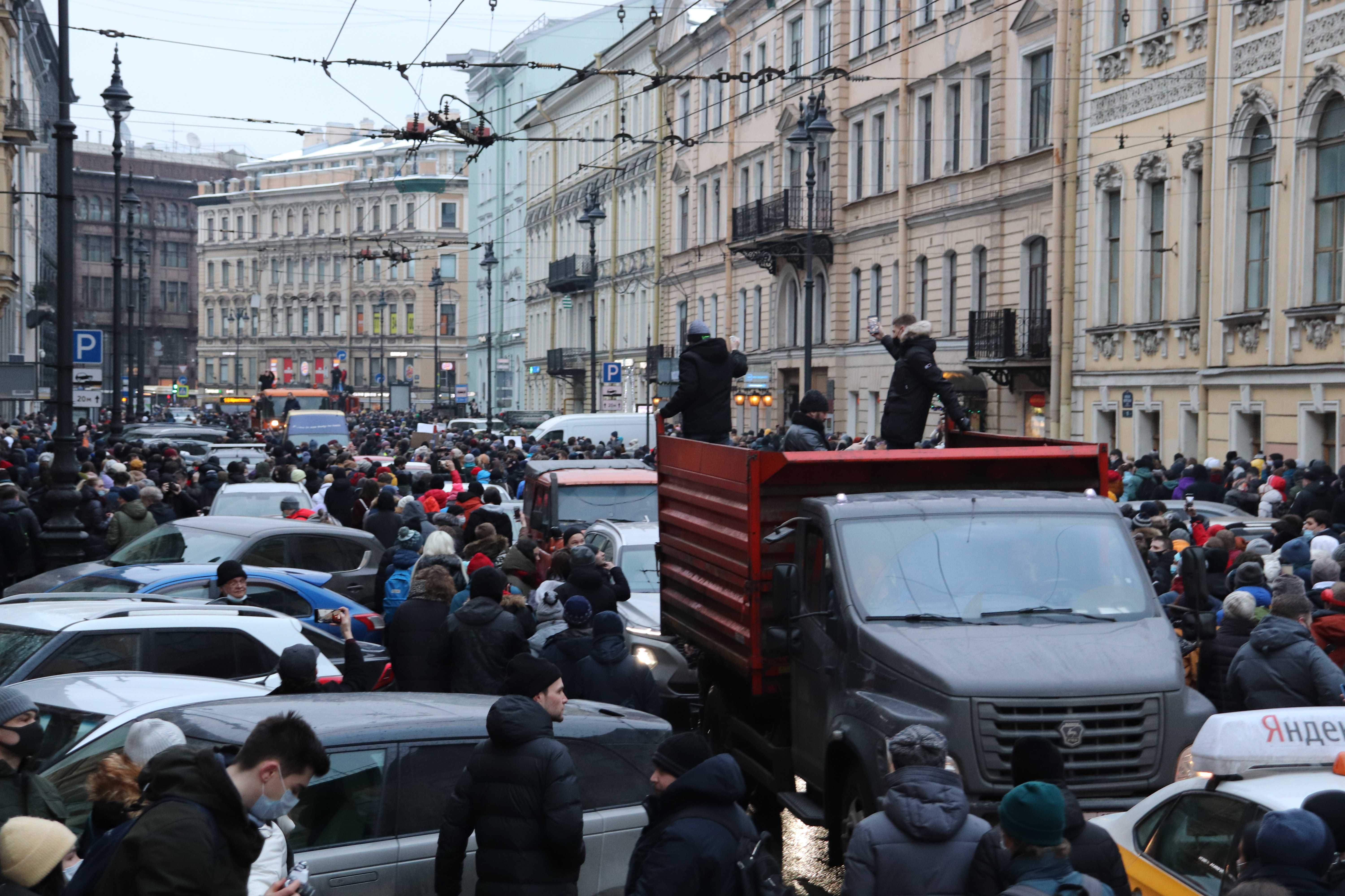 Во время акции протеста в поддержку Навального на Невском проспекте сотрудник ОМОНа ударил ногой женщину, которая подходила к правоохранительным органам. ГУ МВД по Санкт-Петербургу начали проверку.