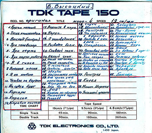 Он мне сразу сказал: все пленки храни у себя. Потому что у меня дома друзья-приятели их обязательно утащат в качестве сувенира и знать не будешь. Поэтому, когда пленка была записана, она лежала у меня дома, и потихоньку набиралось их количество.