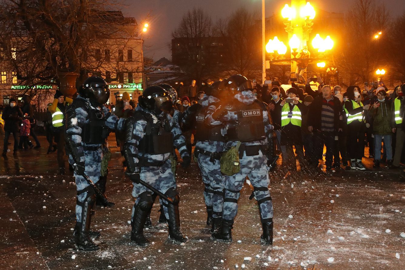 Protesters outside Moscow also threw snowballs at the police. In Yekaterinburg, it began after the authorities started using force to arrest and disperse demonstrators.