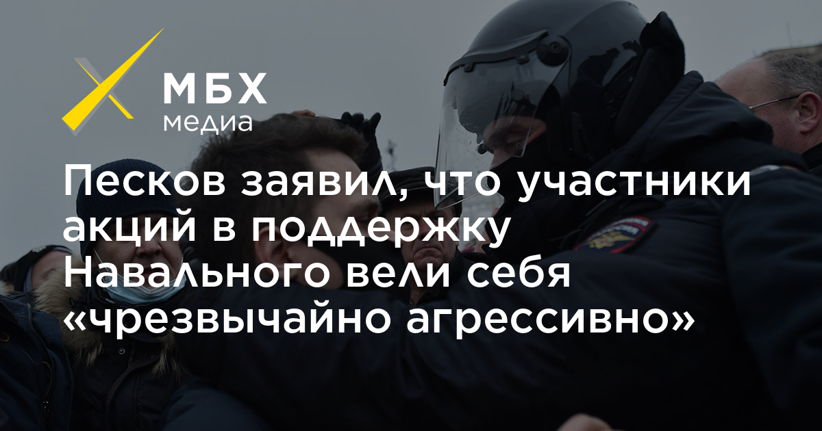 Песков заявил, что участники акций в поддержку Навального вели себя «чрезвычайно агрессивно»