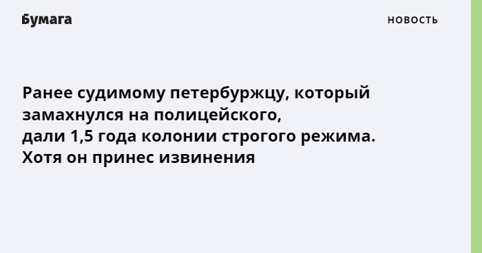 Петербуржцу, замахнувшемуся на полицейского, дали 1,5 года