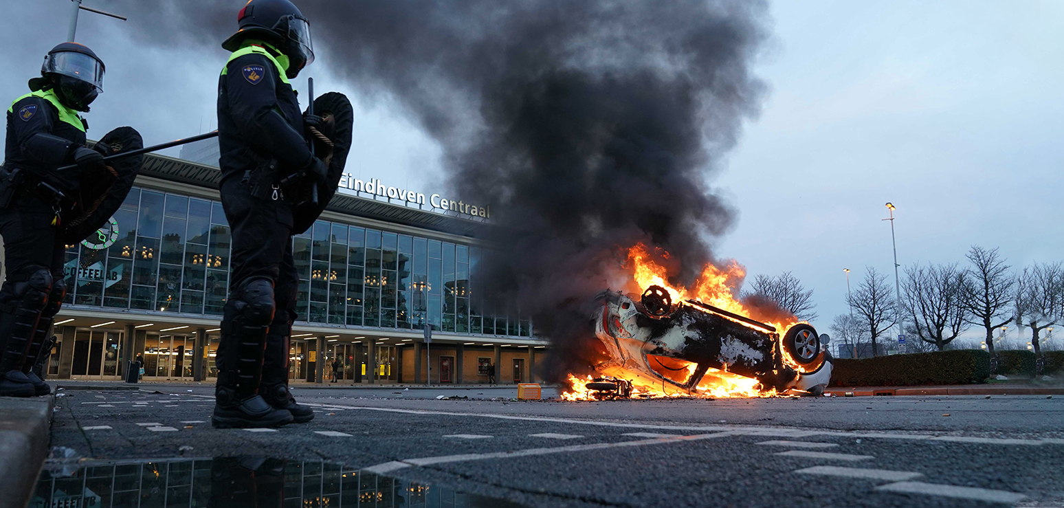 В нескольких голландских городах вспыхнули протесты: в Эйндховене вышедшие на улицу протестующие поджигали автомобили, били окна, а также ограбили супермаркет и несколько магазинов, пишет The Guardian. Как рассказывает мэр города Джон Джорритсма, во время протестов он «плакал вместе со всем городом»: когда полиция заявила, что протестующие нарушают правила самоизоляции, «они достали оружие и немедленно напали на полицию».